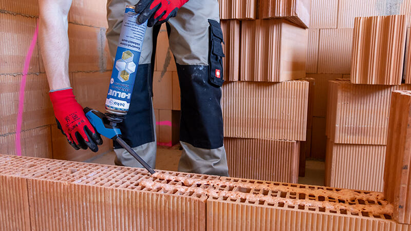 Estremamente adatta per l‘incollaggio di laterizi rettificati, non richiede malta, pulizia del cantiere, non richiede acqua, indurimento entro 2 ore in condizioni ambiente ideali, evita il trasporto di pesanti carichi di malta, incolla praticamente tutti i materiali da costruzione come mattoni, calcestruzzo, pietra, legno, materassini isolanti e rivestimenti in laterizio, utilizzo 50% più veloce rispetto alla malta convenzionale, costi di trasporto inferiori, compatibile con la pietra naturale.